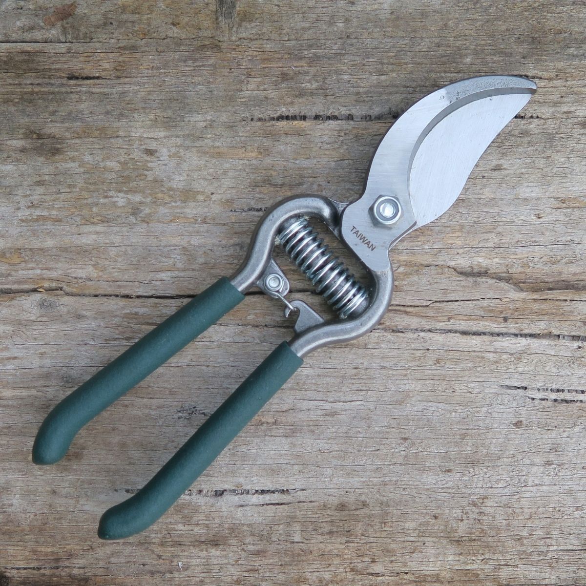 Traditional heavy duty forged steel pruning shears. These precision engineered heavy duty bypass pruning shears are made from drop forged chrome vanadium handles and blades. The blades have been heat treated and coated to provide maximum durability and longevity. Great secateurs for heavy duty use will cut through branches up to 3cm thick. Dark green non-slip handles in a classic design. Perfect for trimming and pruning fruit trees, roses, or general pruning and cutting around the garden.