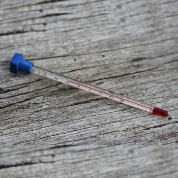 Propagating Thermometer. This thermometer is designed for use within a propagation box or greenhouse to check ambient temperatures for optimum seed germination. Glass thermometer with plastic top. Accurately measures temperatures between -30 degrees Celsius up to 50 degrees Celsius. Also has measurements in Fahrenheit.
