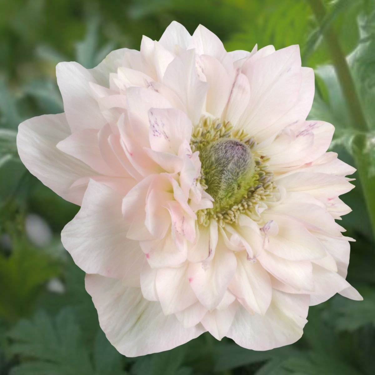 Herbaceous perennial to 50cm. Light green heavily dissected leaves and strong stems suitable for cutting, with each seed producing multiple stems. The delicate, paperlike double flowers form in a cup-shape, with a higher petal count than other anemone varieties. The colour is a watercolour like soft blush pink with a green ruffled centre. Low maintenance once established. Suited to mass planting in drifts, borders and beds as well as containers. Excellent cut flower with long vase life.