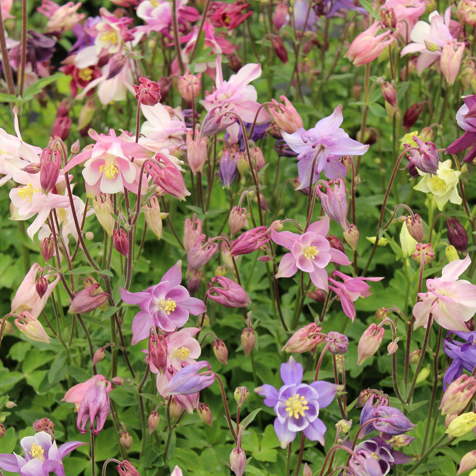 Compact, short-lived perennials growing 35-50cm tall with blue-green leaves and producing upward-facing, short-spurred flowers in colours ranging from white, red and purple, to pink blue and bicolour. There are several flowers on a stem and flowers don't tangle when cut for the vase. Flowers appear from late spring to mid-summer.