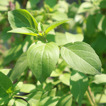 Heirloom basil with a tidy, upright habit and growing to 80cm tall. This anise basil has silvery green leaves and a spicy, liquorice flavour. Does well in garden beds and in containers. Flowers attract beneficial insects.