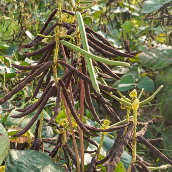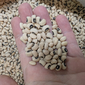 A variety of cowpea, this legume originates from West Africa and is grown around the world for its nutritious, medium-sized, creamy-white seeds which have a distinctive black spot. Plants grow to 60cm tall. Pods can be eaten and used fresh like green beans when still green and tender. To harvest dried peas, allow pods to mature fully on the plant until they turn yellow and become dry and brittle. The seeds inside should rattle when picked. Harvest whole pods, remove seeds from the shells and store in an airtight container in a cool dry place.