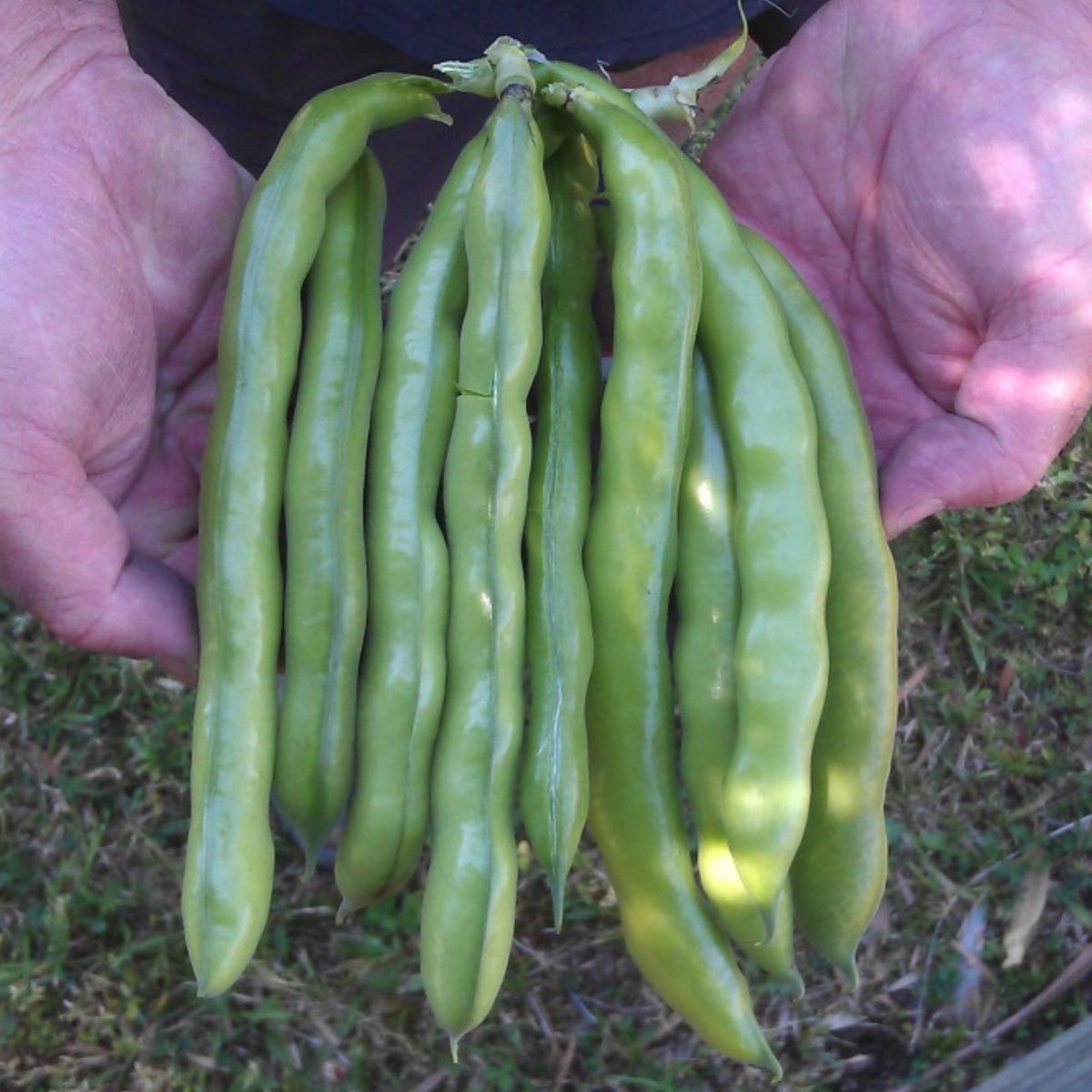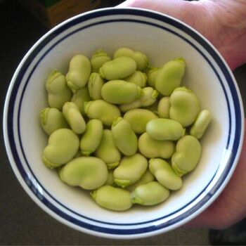 Broad beans can be eaten fresh or dried in the pod to be added to soups and casseroles or for longer term storage. Broad beans are also known as 'Fava beans'.