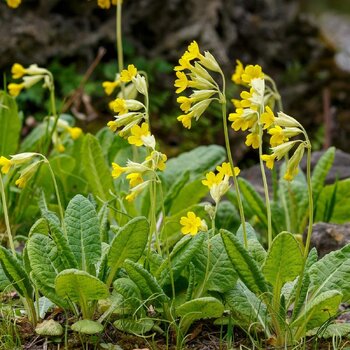 Clump-forming herbaceous perennial growing to 25cm high. Leaves form a basal rosette and upright stems carrying clusters of nodding yellow flowers appear in late winter or early spring. This English wildflower has an apricot-like scent, is ideal for wildlife gardens, in beds, borders and for container growing. The edible flowers can be used in teas.