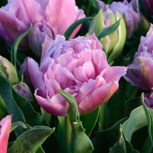 Double tulips have large, multilayered flowers that unfurl gradually and hold well on the stem. They are suited to garden beds or pots and their strong stems and long vase life make them a good choice for cut flowers. For the best display plant in groups or drifts..