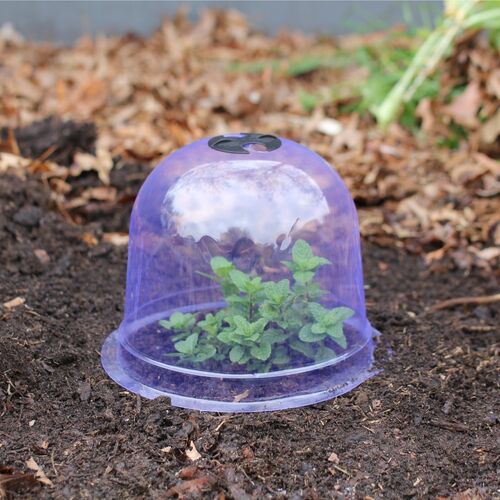 Get a head-start on your spring planting with a plastic garden cloche. Used to protect seedlings from cold and frost, a cloche will also keep your seedlings safe from snails and other pests. Includes an adjustable air vent to control condensation and metal pegs to secure the cloche to the soil.