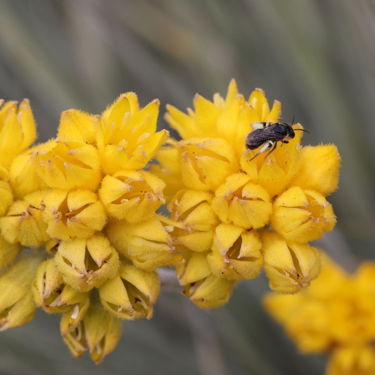 A clumping perennial with strappy grey grass-like leaves and clusters of yellow flower heads growing from the base of the plant from winter to summer. A relative of Kangaroo Paws, it has a compact habit and grows from an underground rhizome. Grow in containers, in a native garden or plant as a border, also suitable for mass planting as a groundcover. Tolerates windy and coastal conditions. Also known as 'Cotton Heads'.