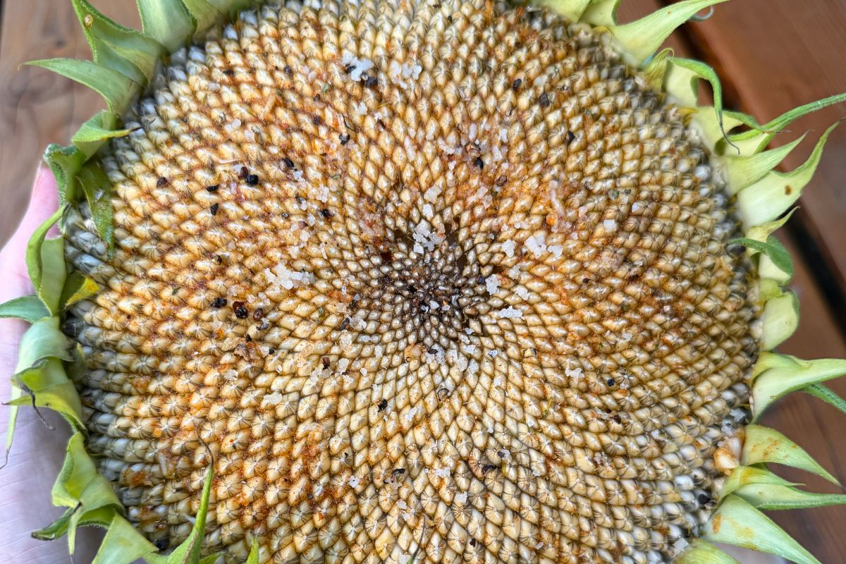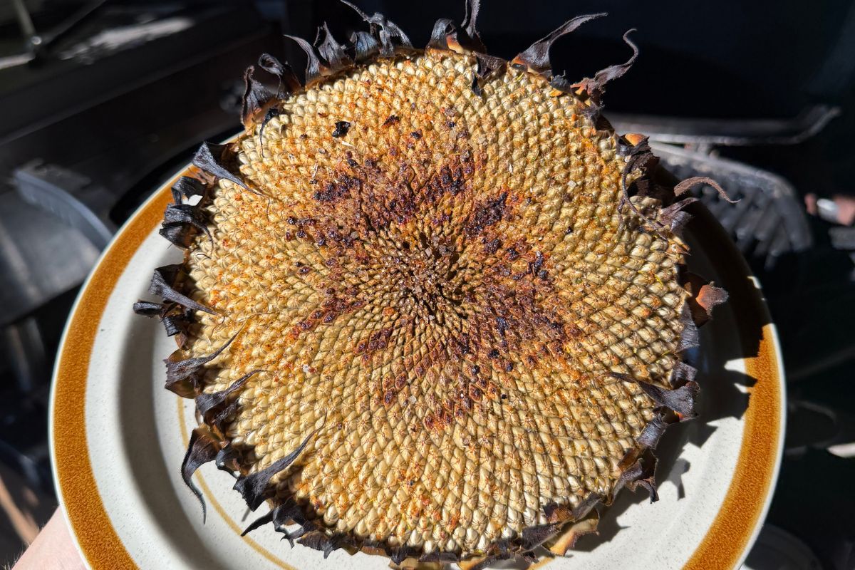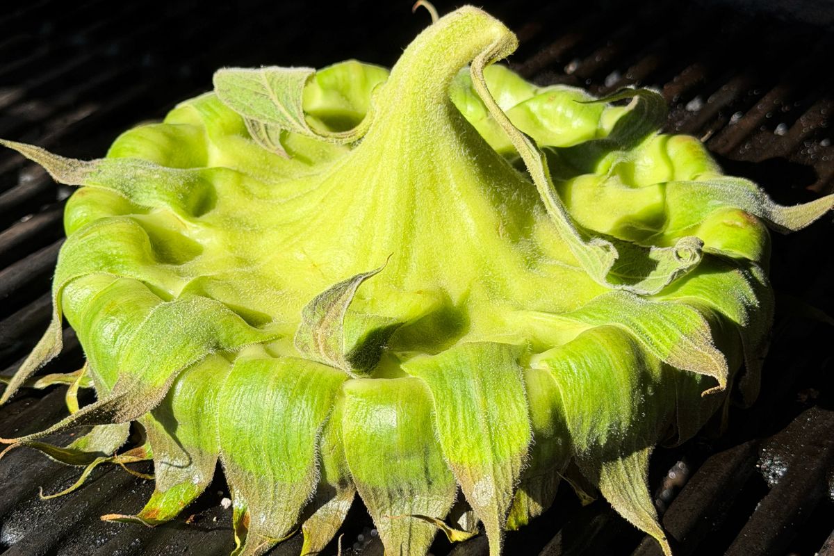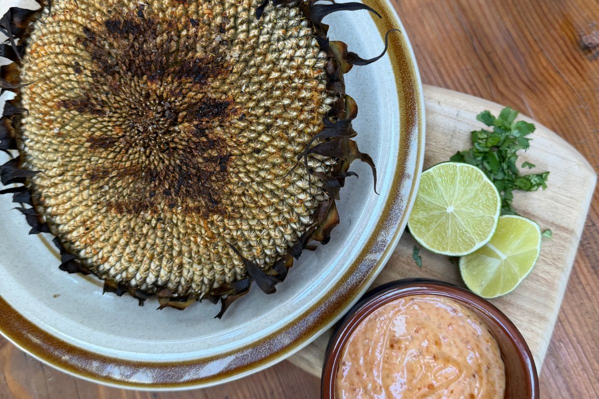 Grilling spent sunflower heads is a unique way to use those large, end of season blooms. Think of it like a cross between sweet corn and a tender artichoke heart, with a mexican street corn flavour. It’s a fun, low fuss way to use those giant heads before the birds get to them.