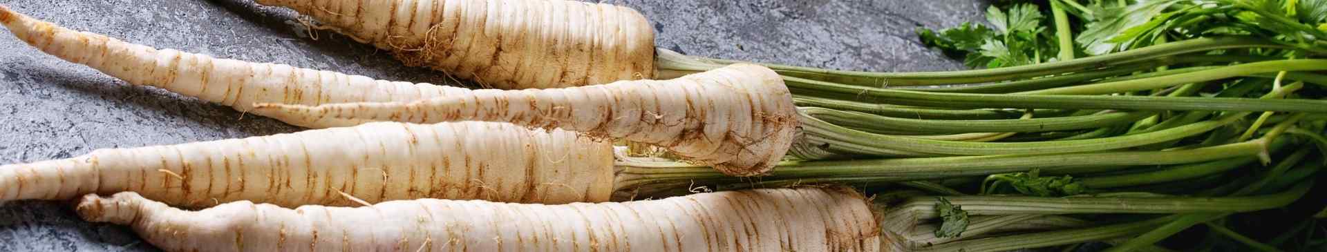 Roots are ready to harvest when they are large enough to eat, and can be harvested as needed. Harvest individual roots by gently pulling at the base of the leaves, or use a garden fork to lift multiple roots from the soil. Shake off any excess soil and cut the foliage 1-2cm above the top of the root. Store parsnips in a perforated plastic bag in the fridge. For longer term storage parsnips can be blanched then frozen.