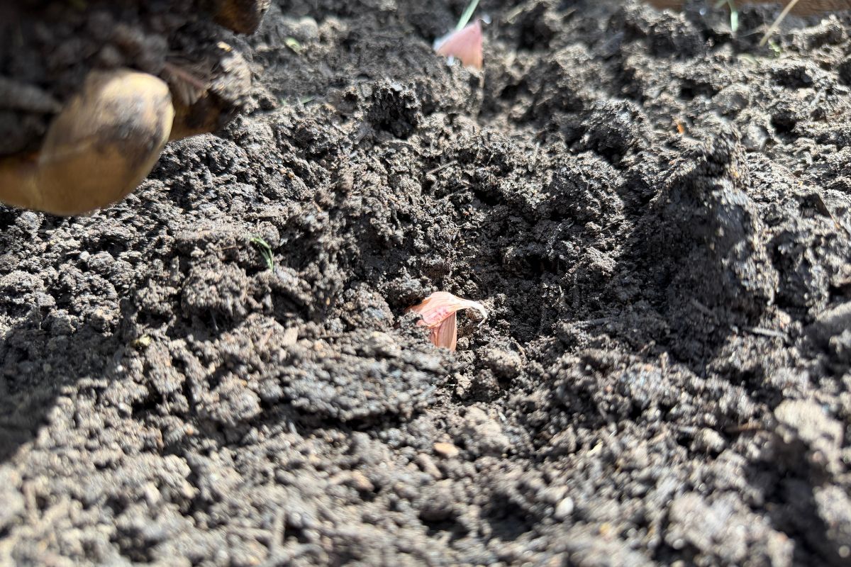 Step 1- Prepare the Soil: Garlic loves a loose, rich bed. Weed the area thoroughly and turn over the soil to break it up. Mix in plenty of organic matter like compost and aged manure. If your soil is heavy clay, consider planting in raised beds or mounding the soil to ensure excellent drainage.