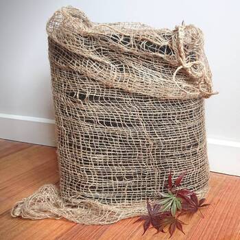 Biodegradable jute fibre leaf bag. Perfect for raking up leaves and grass clippings and putting the entire filled bag straight onto your compost heap. Made from 100% loosely woven natural jute fibre this bag is environmentally friendly and fully biodegradable. The open loose weave design allows for large volume of leaves and trimmings to be collected. Made with drawstring closure, can be re-used.