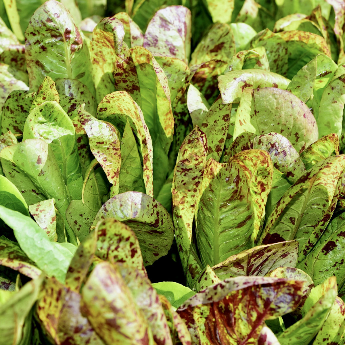 - Crisp, mild-flavoured leaves blotched with burgundy