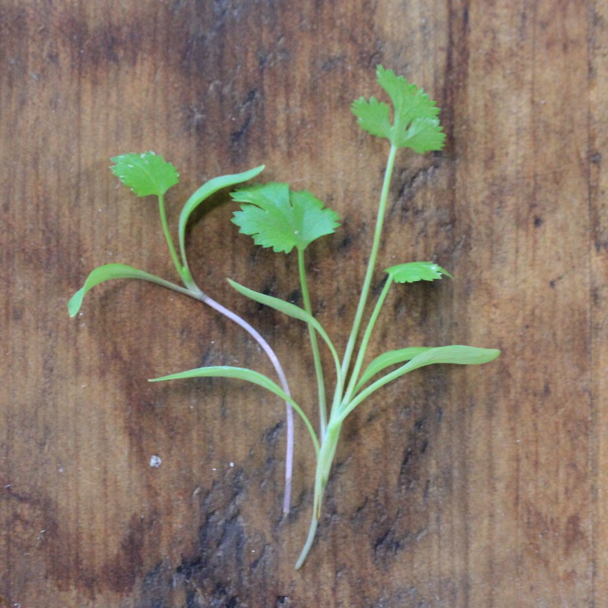 Aromatic plant with bright green leaves with a zesty flavour. Coriander microgreen leaves have a similar flavour to mature coriander but without a 'soapy' undertone. Use microgreen leaves fresh in salads, as a granish, or cooked in soups, sauces and chutneys. Also known as 'Chinese parsley' and 'Cilantro'.