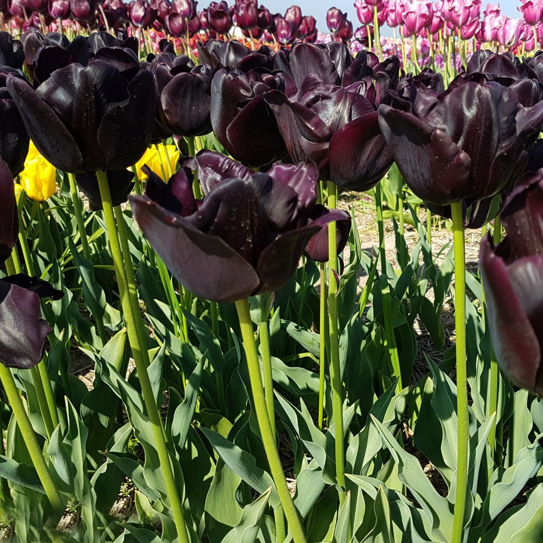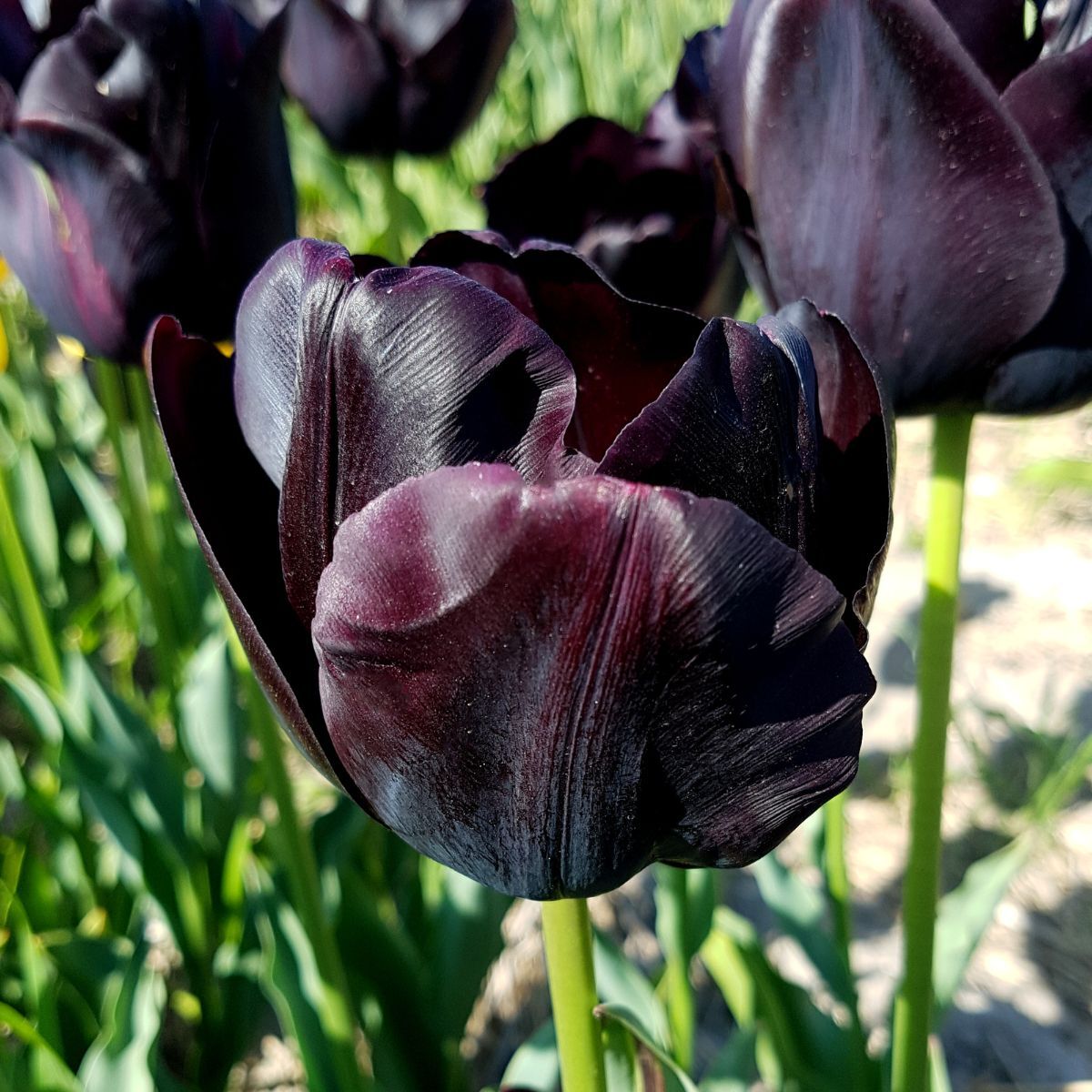 Very deep maroon-purple, almost black flowers with a touch of red. One of the darkest coloured tulips, a dramatic contrast to lighter coloured flowers. Flowers bloom on strong stems.