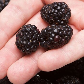 The youngberry is a hybrid of three different berry types; blackberry, raspberry, and dewberry. It was developed in 1905 by B.M. Young in Louisiana USA, and is similar to a boysenberry. The roundish berries are carreid on long canes. They ripen in summer and are ready to eat when they turn a deep purple-black colour. Berries have a sweet-tart flavour. Vigorous and high yielding. The sweet fruit can be eaten fresh or used in jams, pies, crumbles, drinks and preserves. Suitable for growing in all climates with a cold winter.